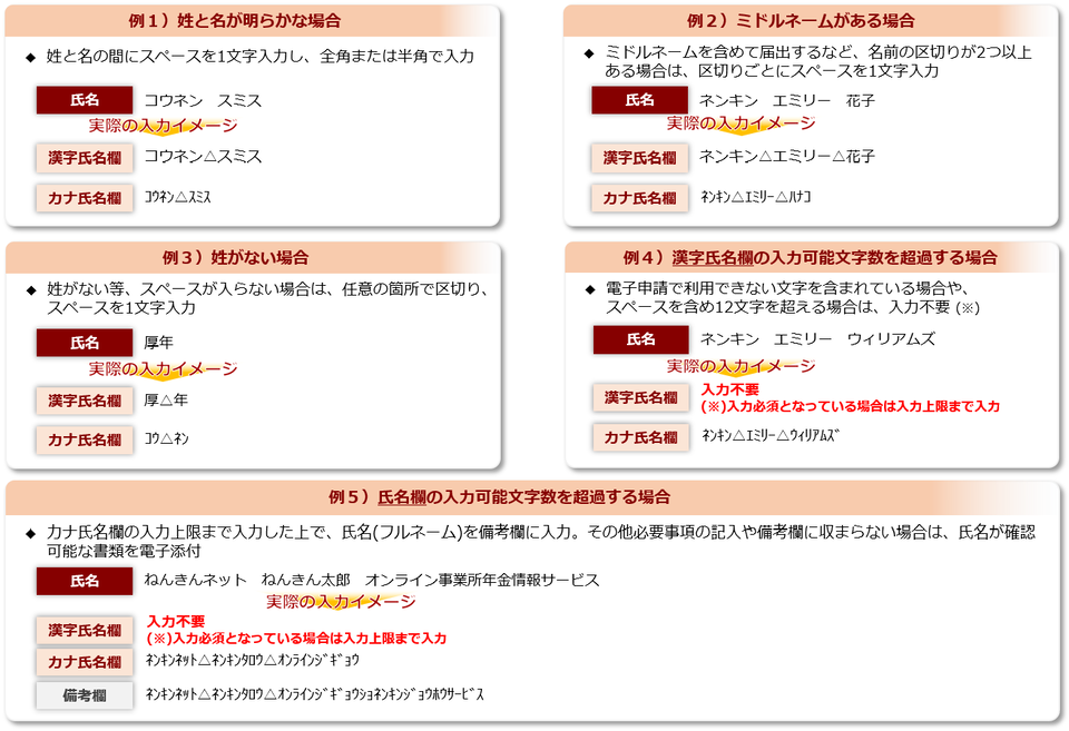 カナ氏名欄:ネンキン△エミリー△ハナコ(全角または半角)