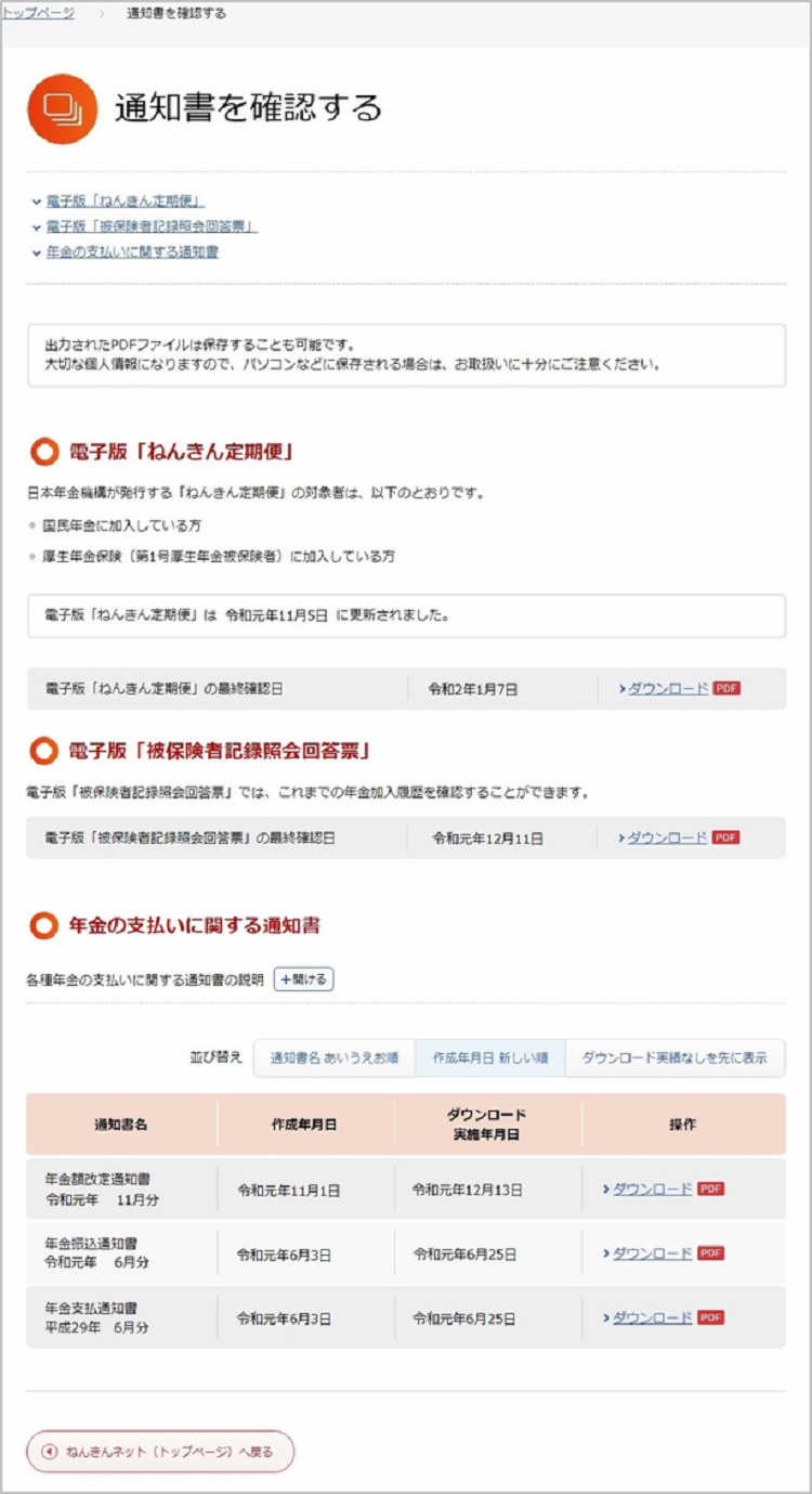 「ねんきんネット」による年金支払いに関する通知書の確認