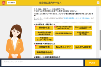 日本年金機構では、お客様からの一般的なお問い合わせに対し、対話形式により24時間いつでも対応するねんきんチャットボットを開設しています。