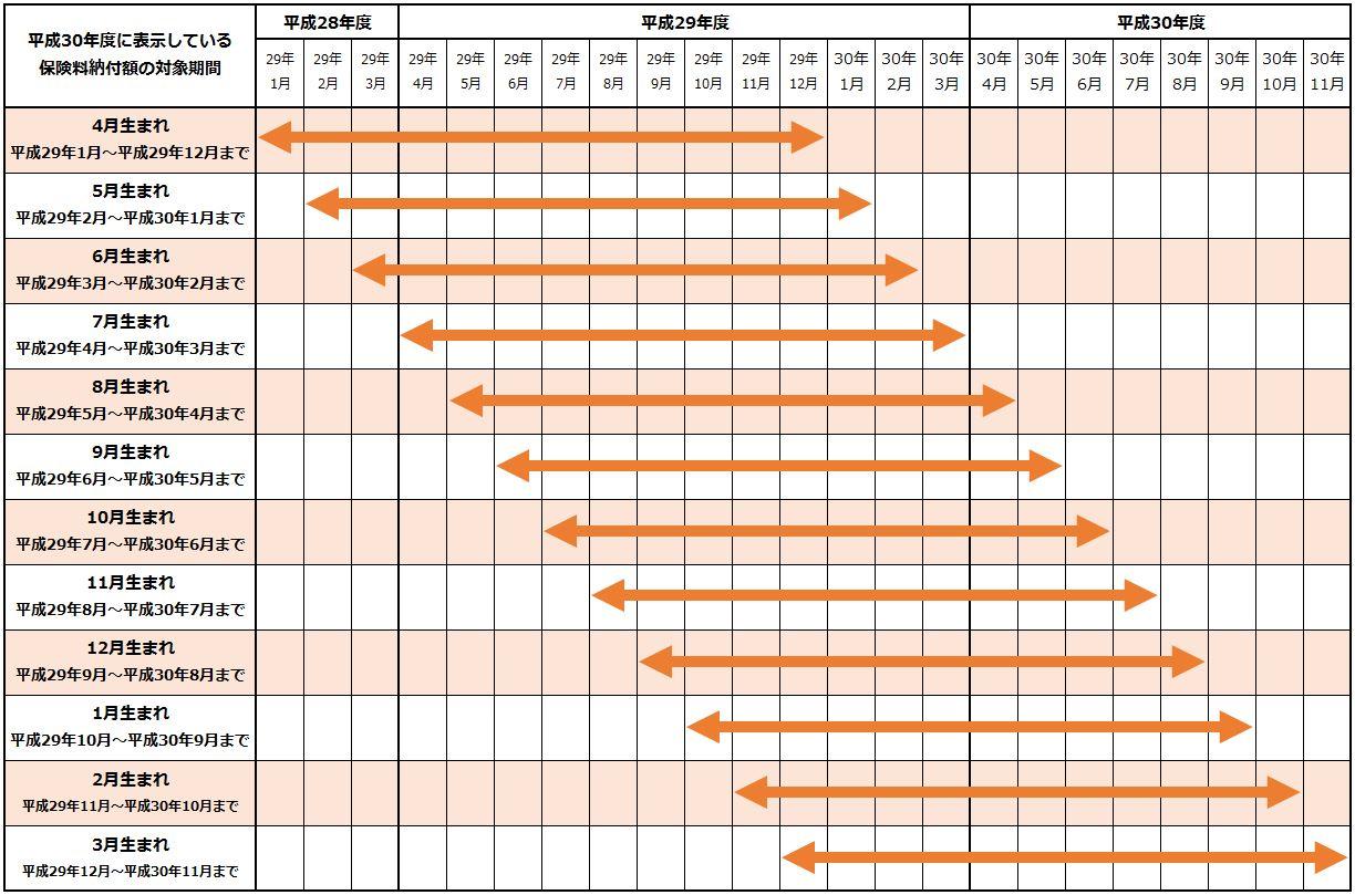 (4月生まれの方の場合、平成29年1月から平成29年12月までの保険料納付額が平成30年度の保険料納付額として表示されます。)