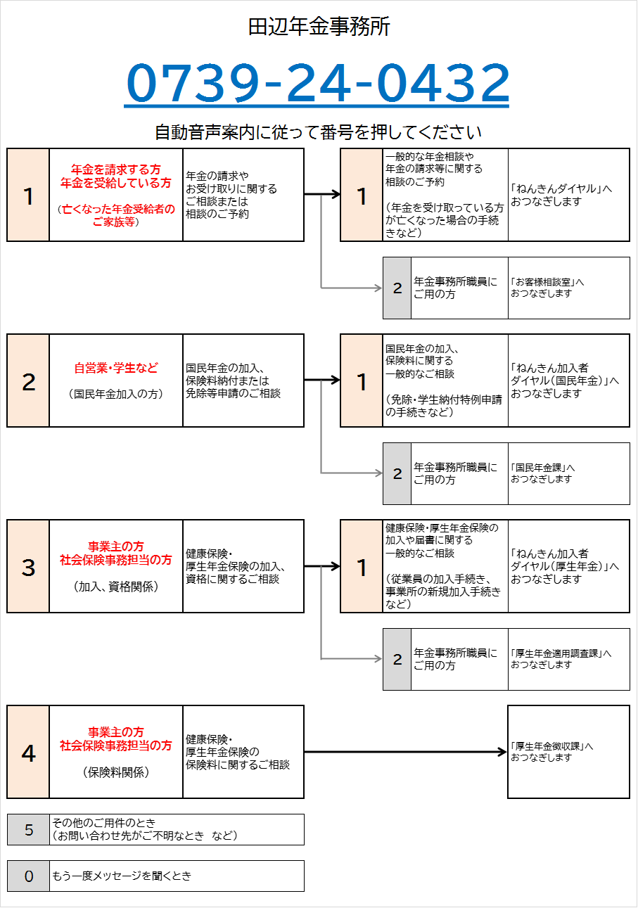 | 年金事務所職員にご用の方(これまでに相談している方など) | 「年金事務所の電話」をご覧ください |