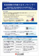 社会保険手続きの電子申請等に関するパンフレット ページID:110010090-699-924-041 更新日:2026年4月10日 印刷 事業所向けオンラインサービス(電子申請・電子送付) 届書作成から通知の受け取りまで、社会保険手続きがオンラインで完結するサービスをご紹介しています。 事業主の皆さまへ 社会保険の手続きはオンラインで! パンフレットを見る 事業主の皆さまへ 社会保険の手続きはオンラインで!(電子送付ver.) パンフレットを見る