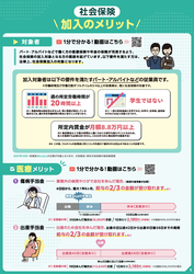 パート・アルバイトの方、配偶者の扶養の範囲内でお勤めの方に向け、健康保険・厚生年金保険加入によるメリットなどをご説明します。